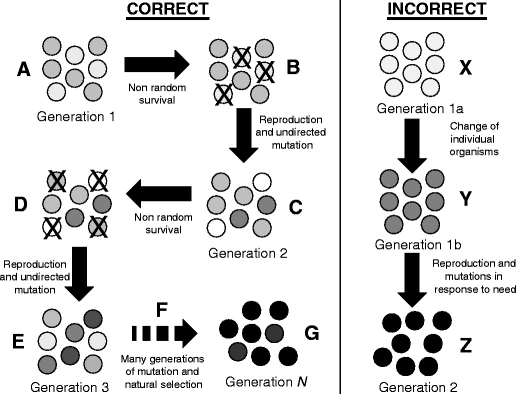 vereenvoudigde weergave van natuurlijke selectie (Correct) en een